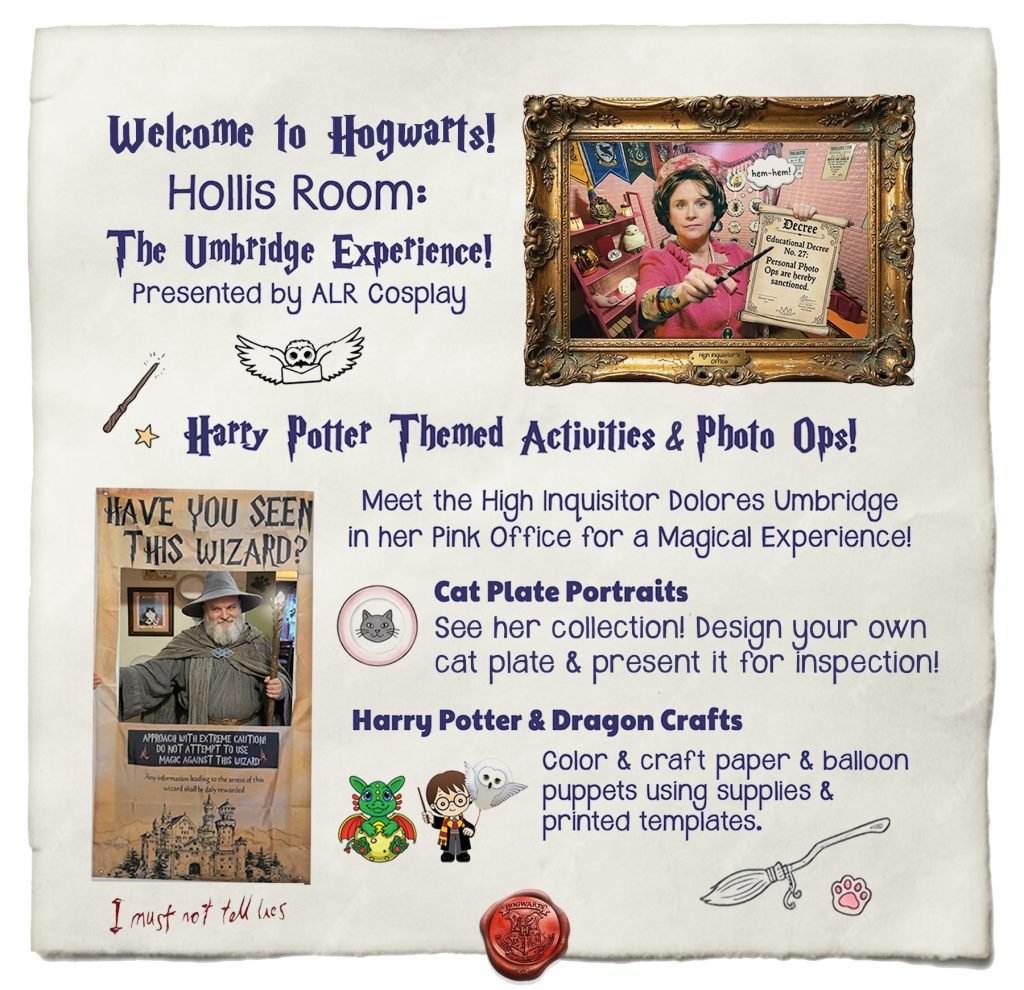 Meet Dolores Umbridge in her office for fun Harry Potter crafts, activities & photo ops!